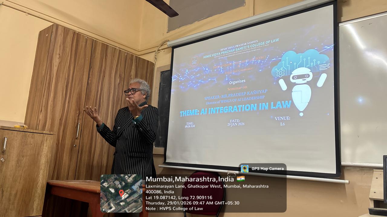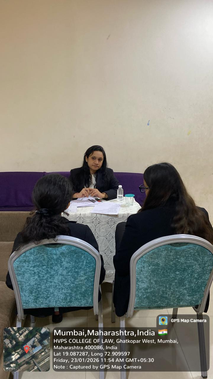 On 16th October 2025, the IQAC, Library Advisory Committee, DLLE, and HVPS Vidhi Nexus Samiti of Hindi Vidya Prachar Samiti’s College of Law jointly organized a Guidance Session on Research Article Writing for FYBA LLB and FY LLB students.The session was conducted by members of the HVPS Vidhi Nexus Samiti Research Committee — Adv. Akash Sharma and Adv. Ramashankar Singh.
